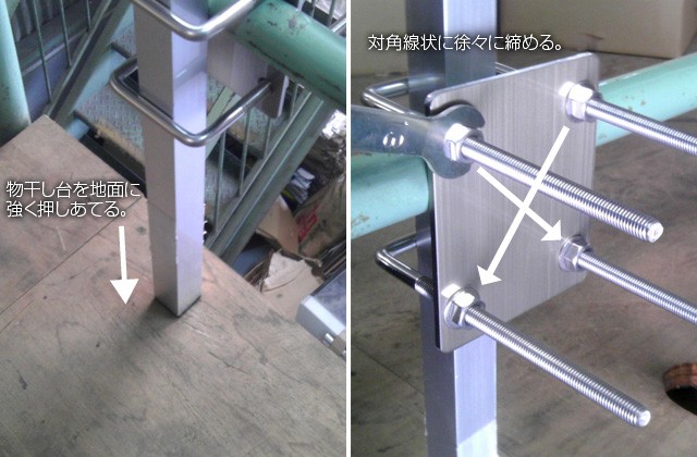 金具と物干し台の位置に問題が無ければ、付属の工具で本締めをします。