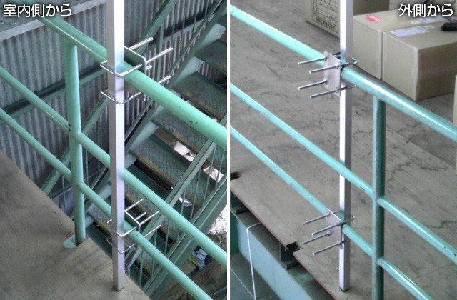 4つ穴のプレートを使用し、横方向に走る部分に設置します。