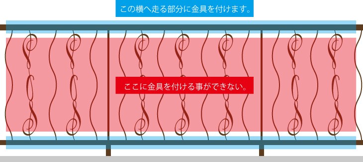 ●格子部分が直線ではなかったり、細すぎたり、飾りがついているフェンスに取り付けます。