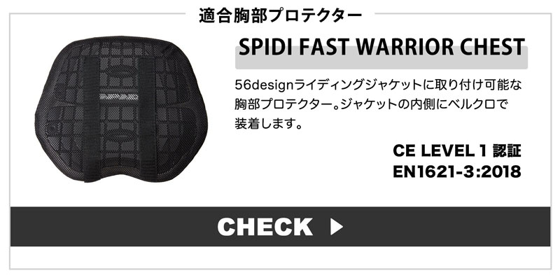 - 胸部パッドは別売(SPIDI製 CE胸部パッド FAST WARRIOR CHEST 装着可能)。