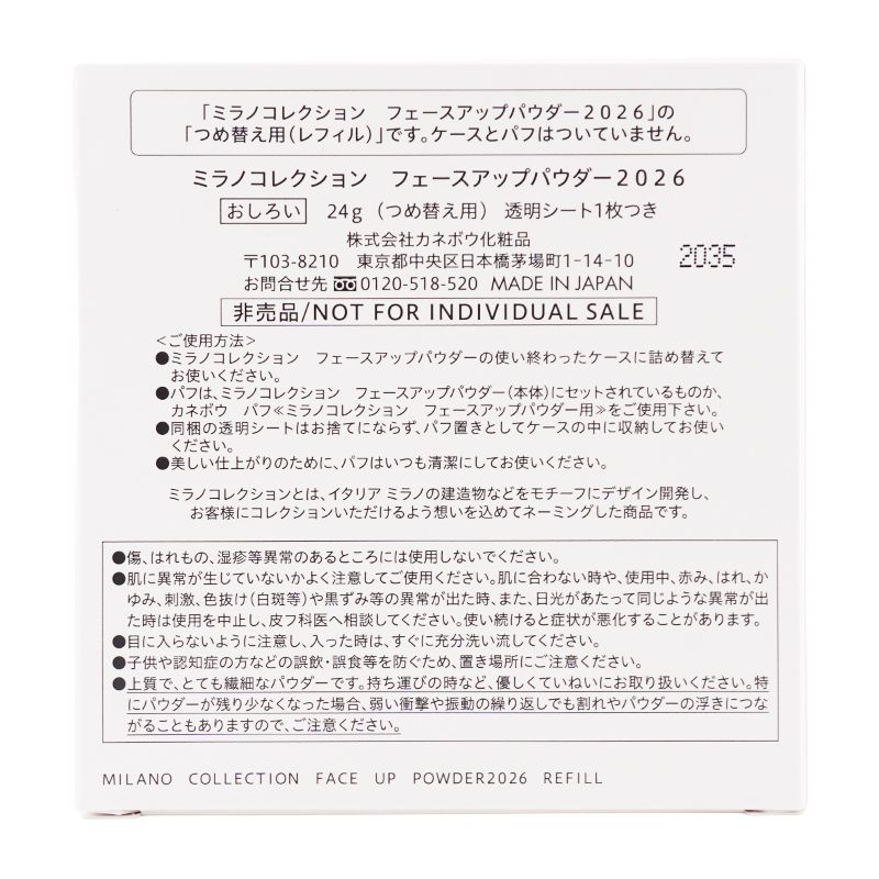 KANEBO カネボウ ミラノコレクション フェースアップパウダー 2026 おしろい 24g つめ替え用 レフィル オリジナル 詰替え用