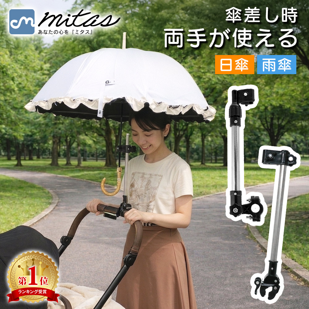 ベビーカーやショッピングカート、シルバーカーなどのバーに取り付けて使える傘スタンドです。日差しが気になる日のお出かけや、雨の日の移動を快適にサポート。傘ホルダーとして使うことで両手が空き、荷物の持ち運びや操作もしやすくなります。