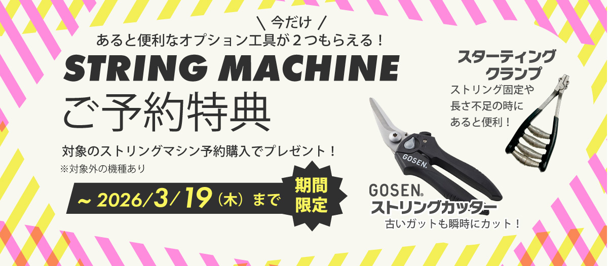 クランプ爪の内側には特殊加工を施し、滑りにくく強力に固定します。ストリングの太さに合わせるダイアルもストッパー付きで緩みにくく安心して作業を進めることが出来ます。