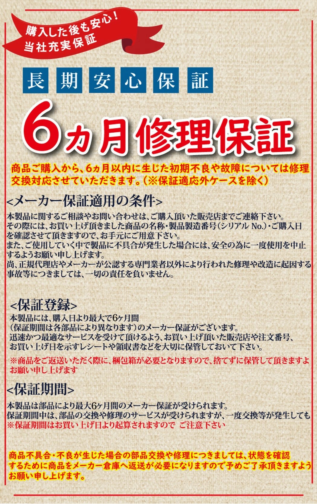 ・こちらの商品は修理パーツ発送を対応致します、保証期間:6ヵ月修理保障/修理代無料。