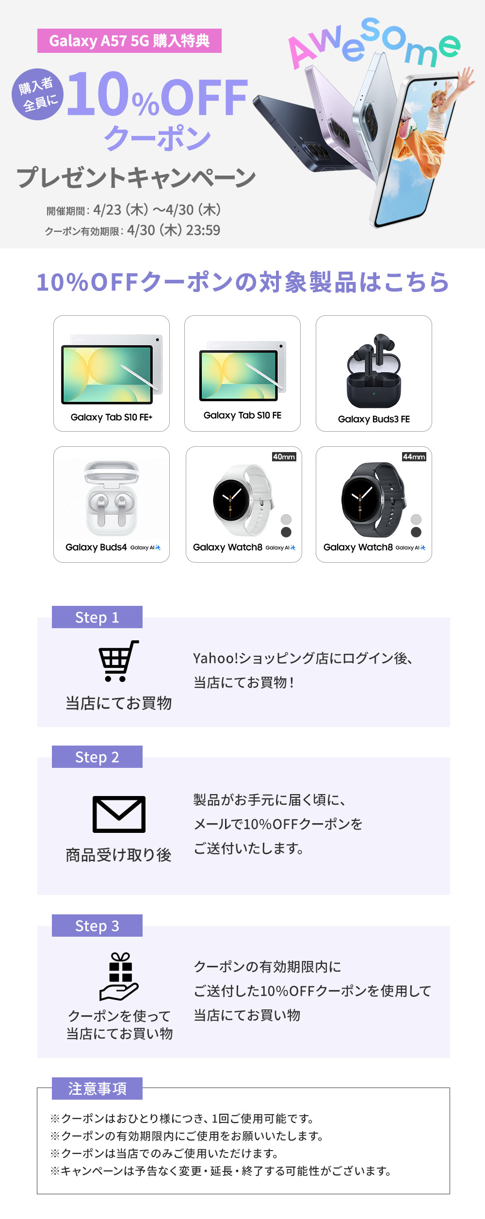 | 本ストアで購入された製品はGalaxy Care(有償保証)の対象となります。Galaxy Careについて詳しくは製品箱に同梱されているクイックスタートガイドをご確認ください。 |