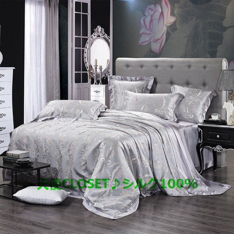 天然シルク100%布団カバー4点セットについて、イタリアのウィービング高技術で数十回くり返し精密工芸で加工処理し、90%がヨロッパ、アジアに輸出品です。