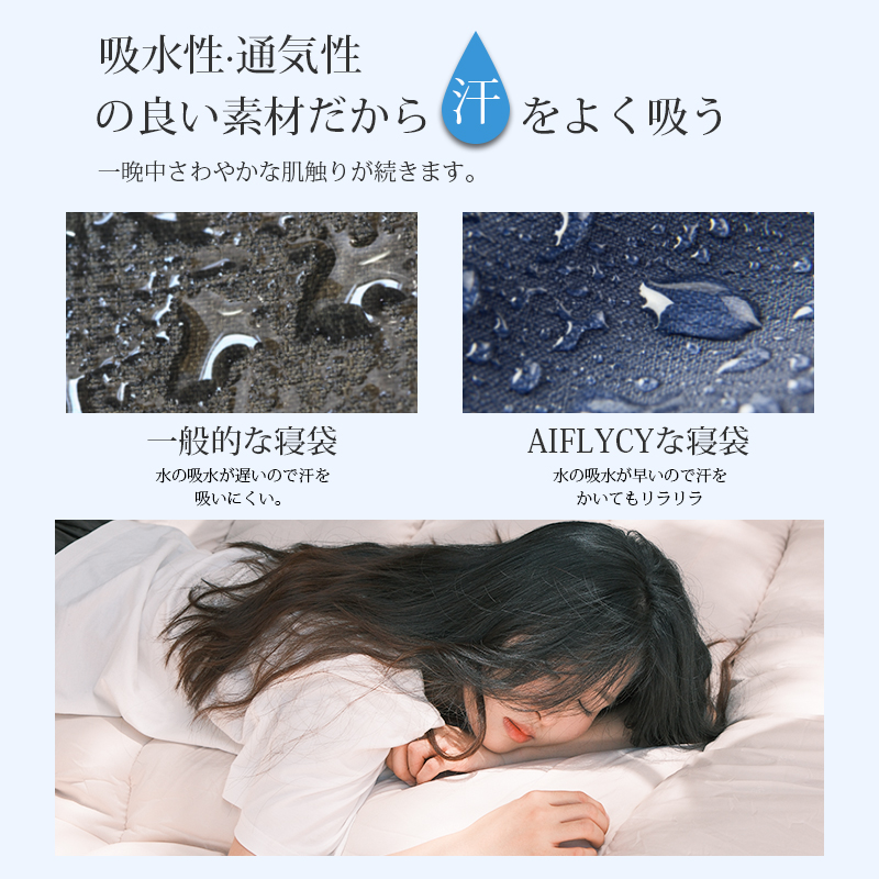 | 【AIFLYCY&新デザイン封筒型寝袋】 ✅ガイドファブリク設計 ・最新裁縫技術 【満足できる11個の理由】 ・保温性優れたともに軽く 【POINT.1 最新裁縫技術】 最新裁縫技術を採用 【POINT.2 優れた生地】 防水性の優れた300Tポリエステル生地を採用し、保温性、速乾性と快適さをすべて満足。 中綿を3Dファイバー製中空化学繊維を使用!