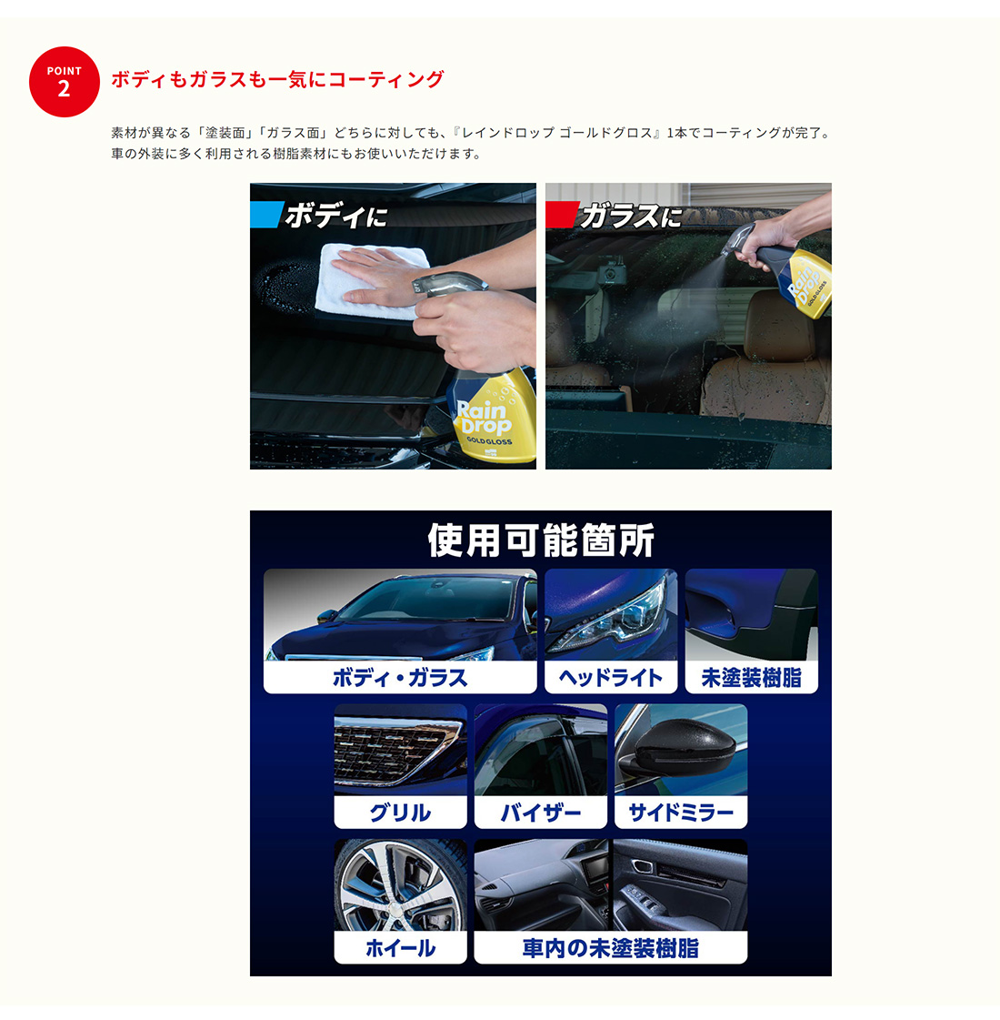 ●ボディ・ガラス・樹脂など幅広い箇所に使用可