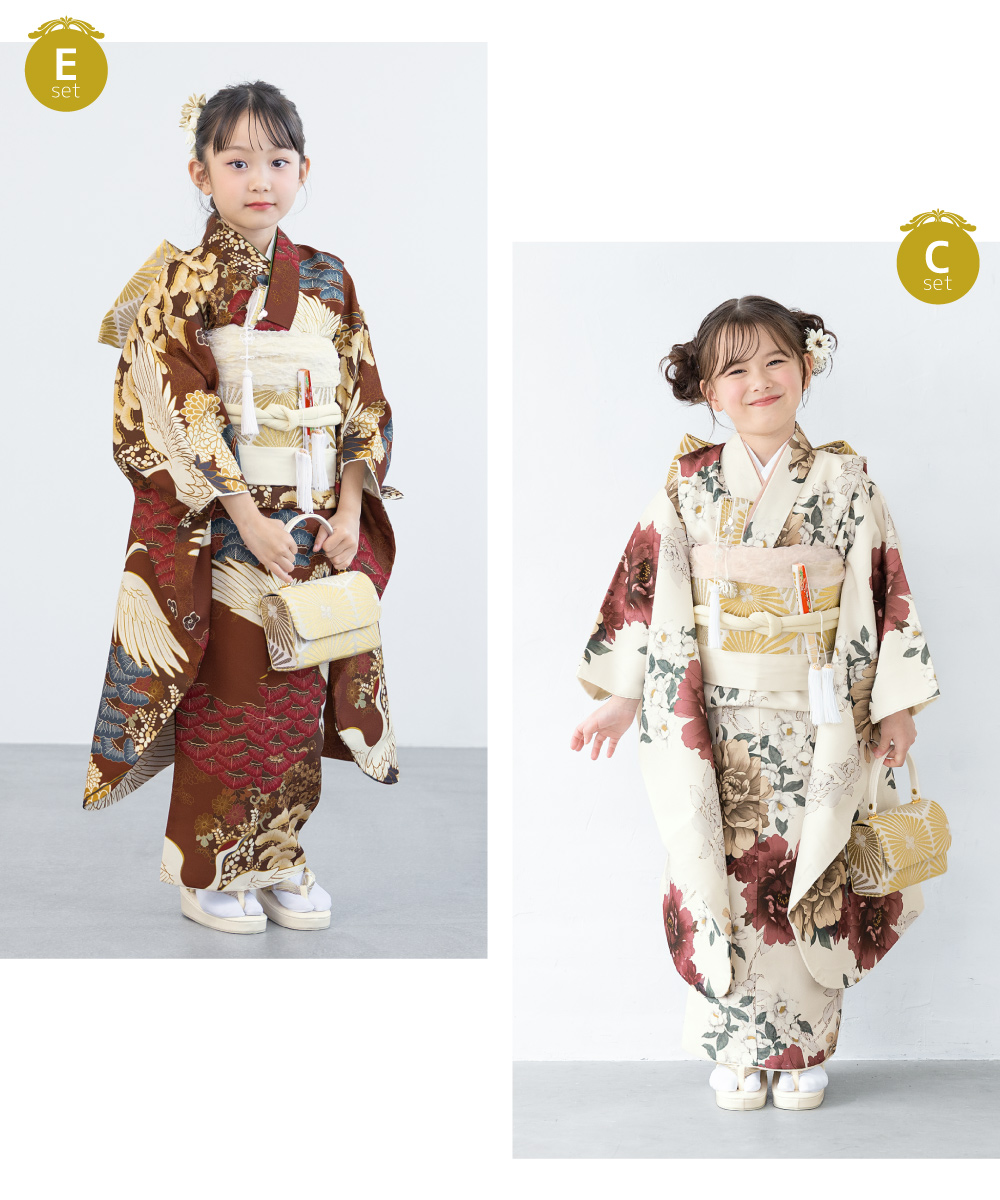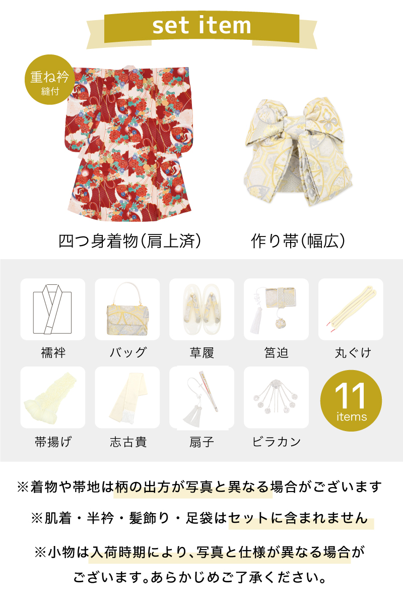 七五三のみならず、お正月、結婚式のお呼ばれなど、お祝いの日にピッタリです。記念撮影にも綺麗に映え、年賀状や写真ハガキにしても思い出になります。肩上げ済みですので、標準的な身長でしたら、そのままお召しいただけます。一度しかない思い出に、素敵な和服を着せてあげたいという親御さんに人気です。