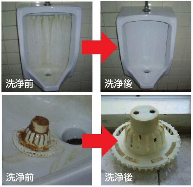 | 便器内に付着した尿石・目皿・トラップの中の尿石の塊を除去します。 毒物及び劇物取締法非該当 ●劇薬を使用していないので安心して使えます!! ●市販の洗剤では不可能な洗浄力!! ●汚れがヒドイときには入れっぱなしでOK!!翌日ブラッシングすれば便器はピカピカ!! 容量:1リットル 成分:氷酢酸、クエン酸、過ギ酸、過水3%、精製水 液性:酸性 【使用方法】 ●トラップ内に溜まった尿石の塊には、トラップ内の水を抜き、アックススパーク原液を注ぎ入れてください。1時間程度漬け置きし、ブラッシングすると簡単に除去できます。 ●一般家庭でのご使用時は、就寝前に注ぎ入れて翌朝ブラッシングすると簡単に除去できます。 ●汚れがひどい箇所には、本製品をハケで塗り、キッチンペーパー等をあててしばらくおいてからブラッシングしてください。 【ご使用に関するご注意】 ●用途以外には使用しないでください。また、ご使用の際は必ずゴム手袋、保護メガネを着用してください。 ●アルミ・ステンレスにはご使用になれません。 ●保管は密栓した容器で直射日光、高温・多湿を避け、換気の良いところに保管し、幼児・子供の手の届かないところに置いてください。 ●他の洗剤と混用しないでください。特にカビ取り洗剤(次亜塩素酸ナトリウム)とは、絶対に混ざらないようにご注意ください。 【応急処置】 ●万一(原液または希釈液)を飲み込んだ場合はすぐに水で口をすすぎ、アルカリ飲料水を飲ませ、医師の診察を受けてください。 ●液が目に入った場合はすぐに流水で15分以上洗眼し、医師の診断を受けてください。 ●皮膚に付着した場合はすぐに水・石鹸等で洗い流してください。 ![]() メーカー:アックスブレーン株式会社(AX BRAIN LTD.) |
