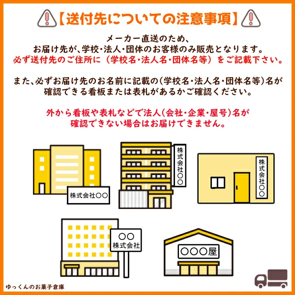 また、必ずお届け先のお名前に記載の(学校名・法人名・団体名等)名が