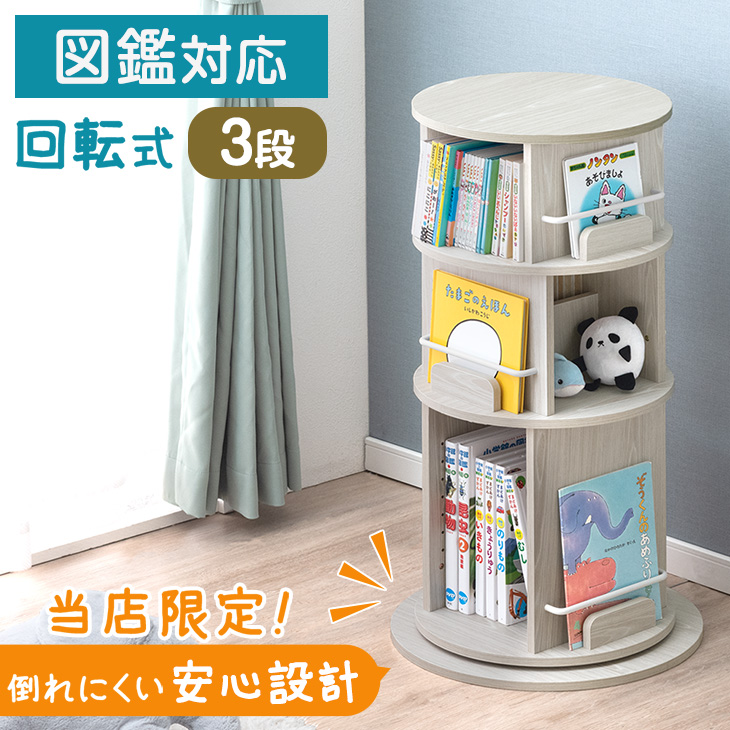 ▼ 省スペースに設置できる回転式の絵本ラックもございます ▼