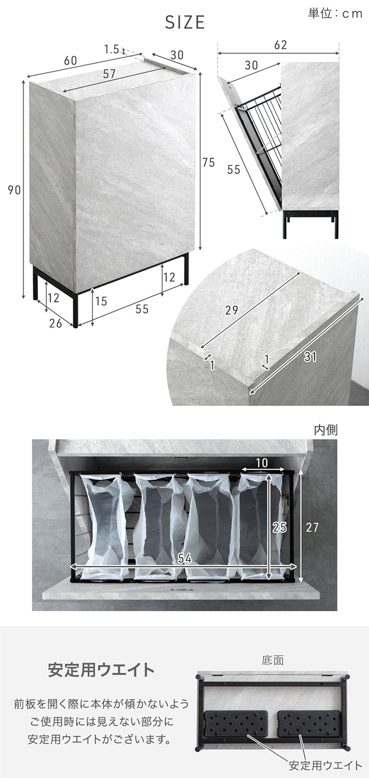 ゴミ箱 90l おしゃれ 目隠し 蓋付き 分別 おしゃれ ダストワゴン シンプル 隠せる 4分別 ふた付き 北欧 スリム キッチン 一人暮らし