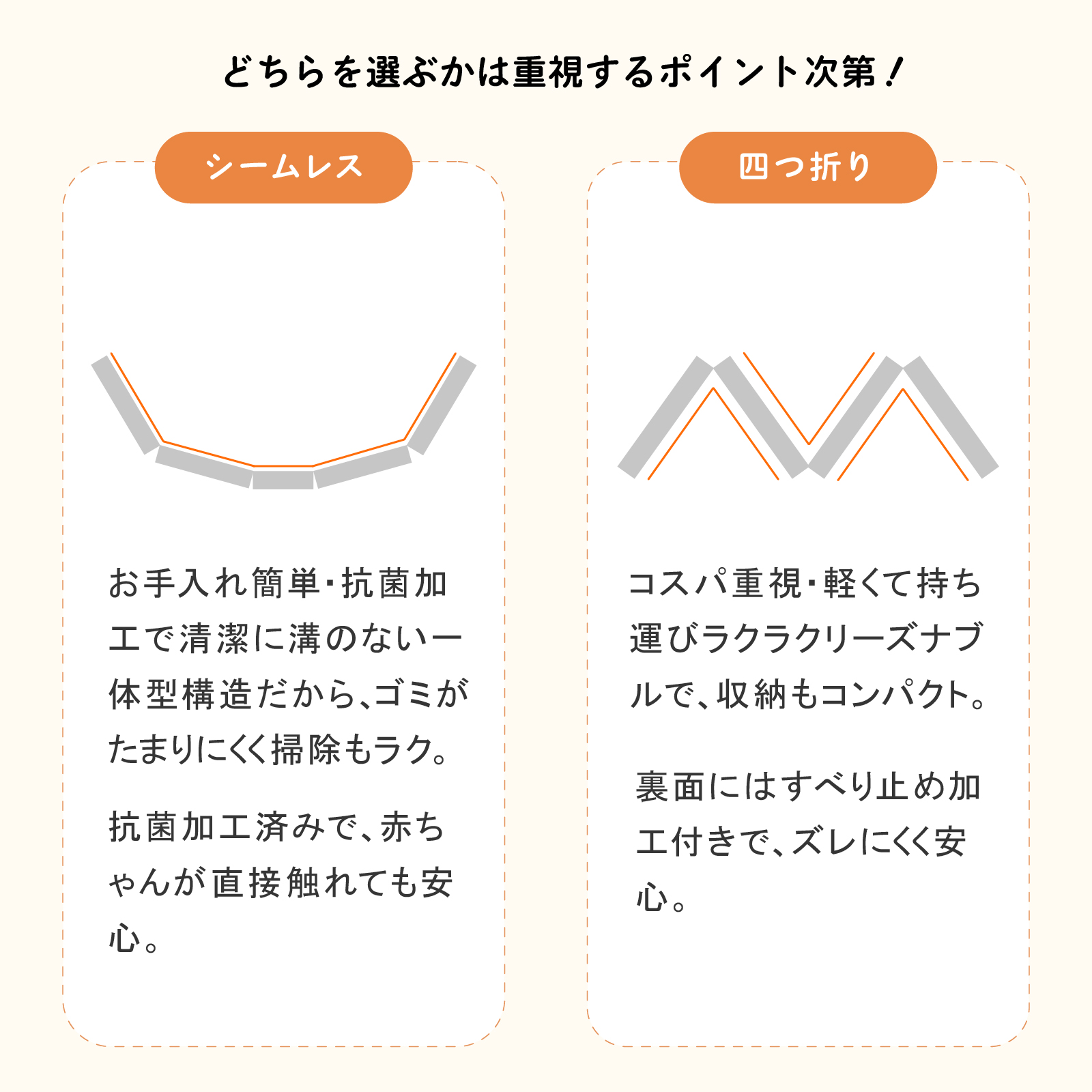 | 特徴 | 【ベーシックタイプ固定タイプ仕様】 ・折りたためるのでコンパクトに、持ち運んでもかさばらない安心感 ・汚れが染み込まず、拭くだけでキレイが保てるPUレザー ・厚手クッションで遮音・断熱性が高い、冷たさや音を防止 ・ずれにくい固定タイプ、安心して使える ・床暖房やホットカーペットの上にも使用可能 ・簡単に収納、持ち運びもラクラク |