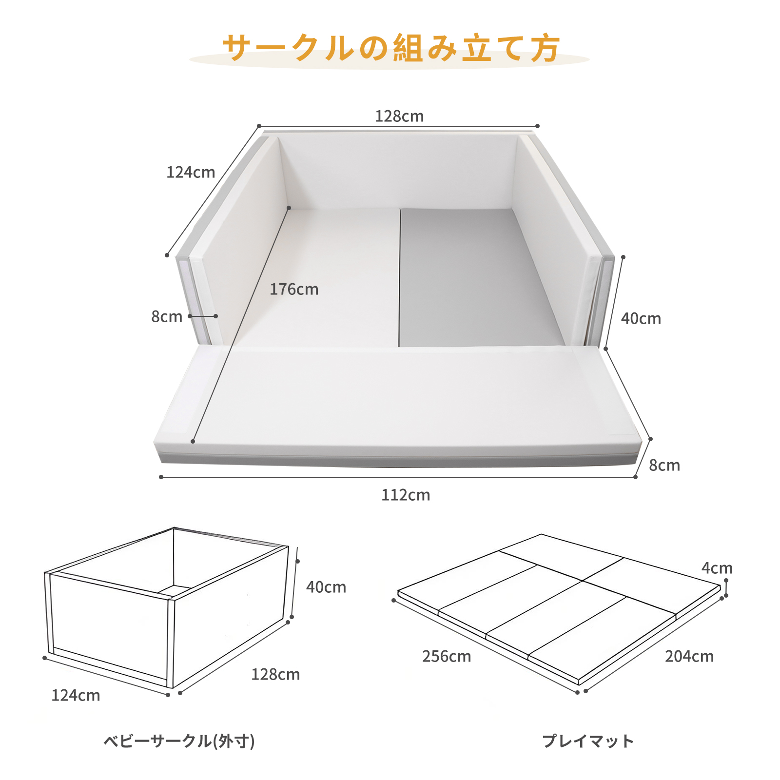 | 商品サイズ | ・サークル外寸:124 x 128 x 40cm ・マットサイズ:256 x 204 x 4cm |