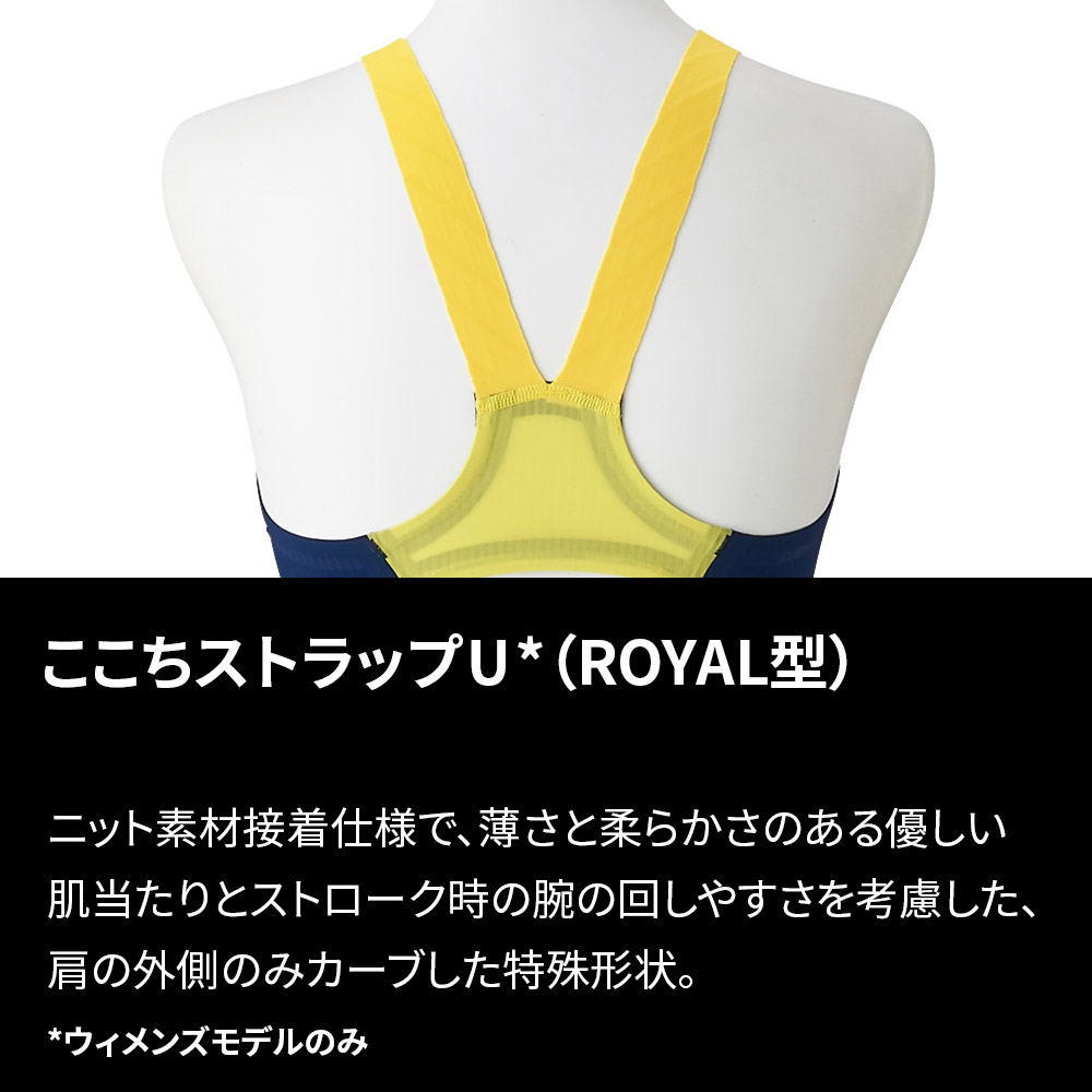 ■水中で軽量性を発揮するスリットナイロン構造の高撥水布帛(SONIC LIGHT RIBTEX-UW0)と、ホールド感の異なる布帛素材を組み合わせて設計されたトップレース水着 GX・SONIC ROYAL