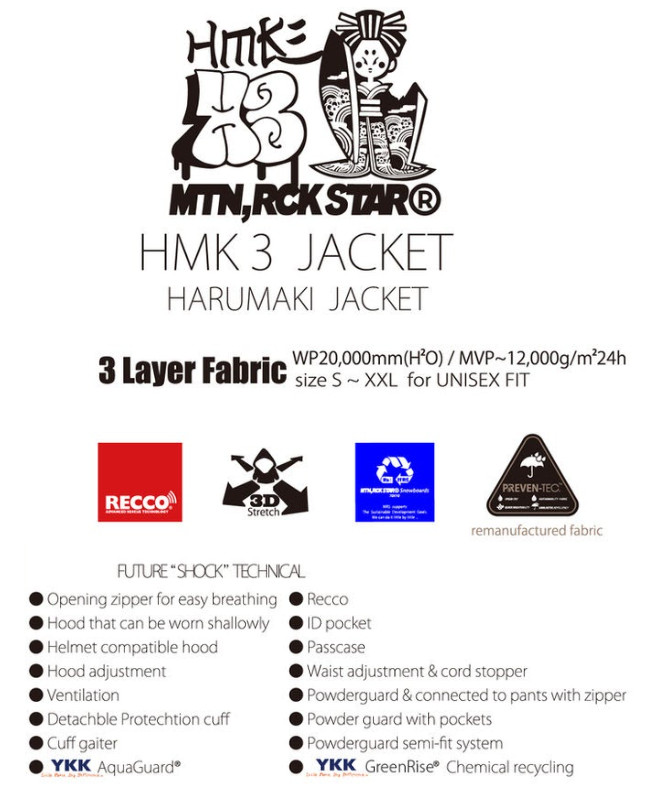 HARUMAKI シリーズでもっとも軽く、MRS ライダー使用率 No.1 モデルの H3 ジャケット。 シンプルなシルエットにストレッチ性を生かした切り返しが特徴です。 環境への影響も考慮した SDGs として長く使用できる WEAR をテーマに CARVING で とても消耗する袖に取り外し可能で とても丈夫な Fabric を採用したデタッチャブルカフベルトを装備。 生地には PREVENT-TEC リサイクル Fabric を使用。 耐水圧 20,000mm(H2O)、透水性(〜12,000g/m/24h)、 生地表面には超撥水加工を施し、 水弾きをさらに向上させています。 またこの Fabric は、内側にあたる LINING 生地には 通常のメッシュではなく引き裂き強度の高い マス目状の生地を貼り合わせ、 薄手で軽いのにとても丈夫です。 その他、可能な箇所にバイオマス由来原料の YKK GREEN RISE ファスナーを使用。 ※プリント生地は、生地の裁断個所により、お届けします商品が、 画像と多少異なる場合がございます。予めご了承ください。 |