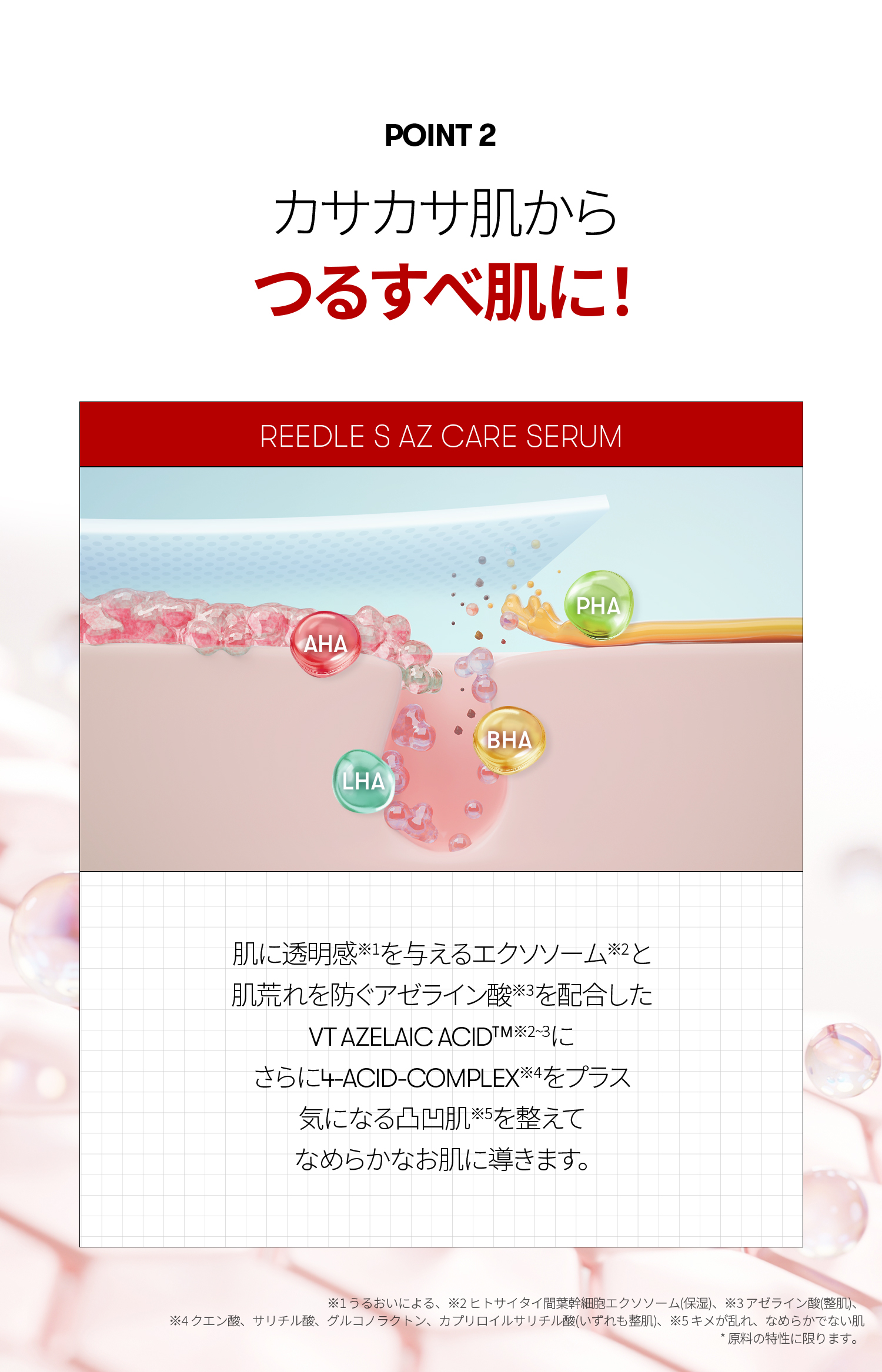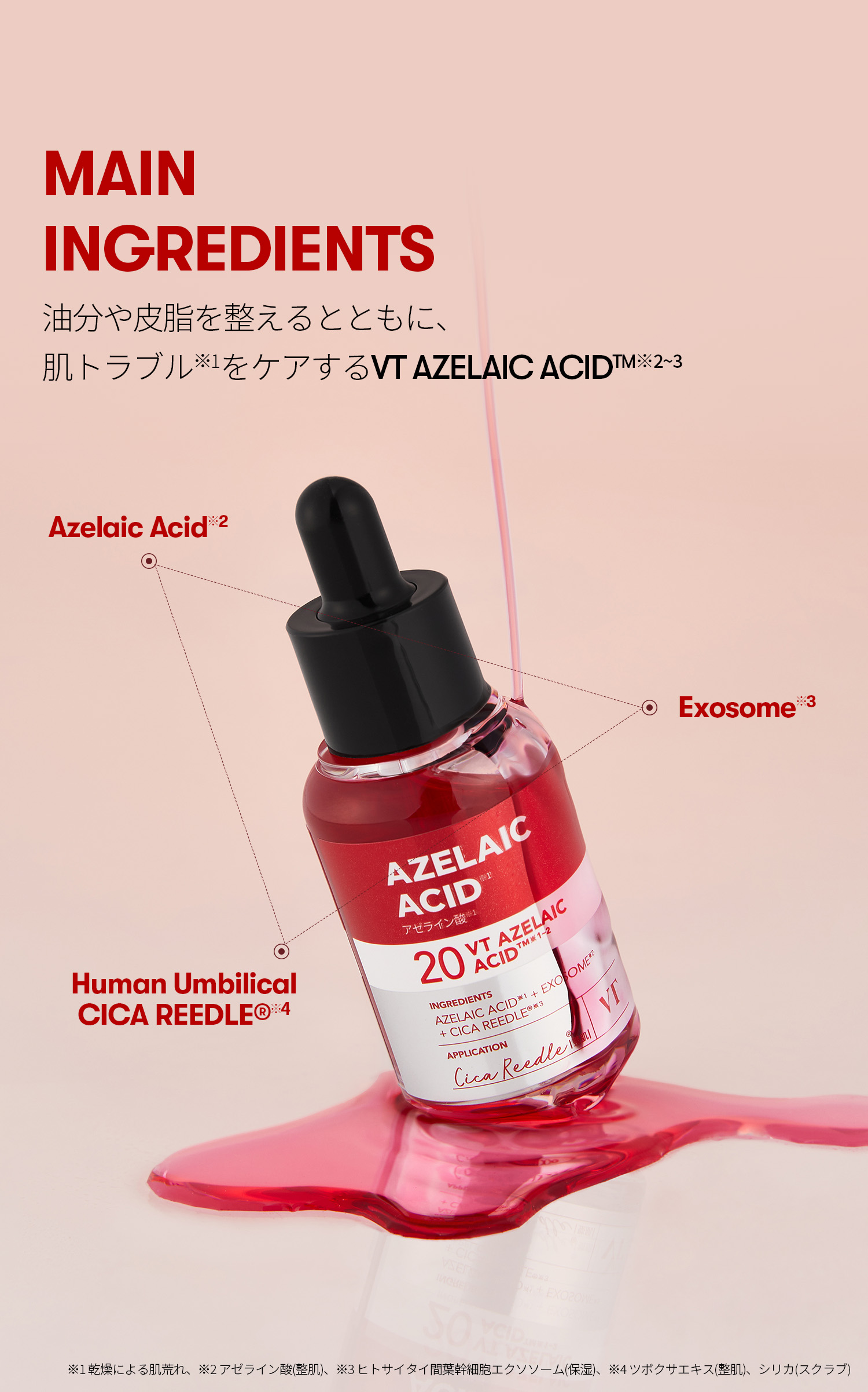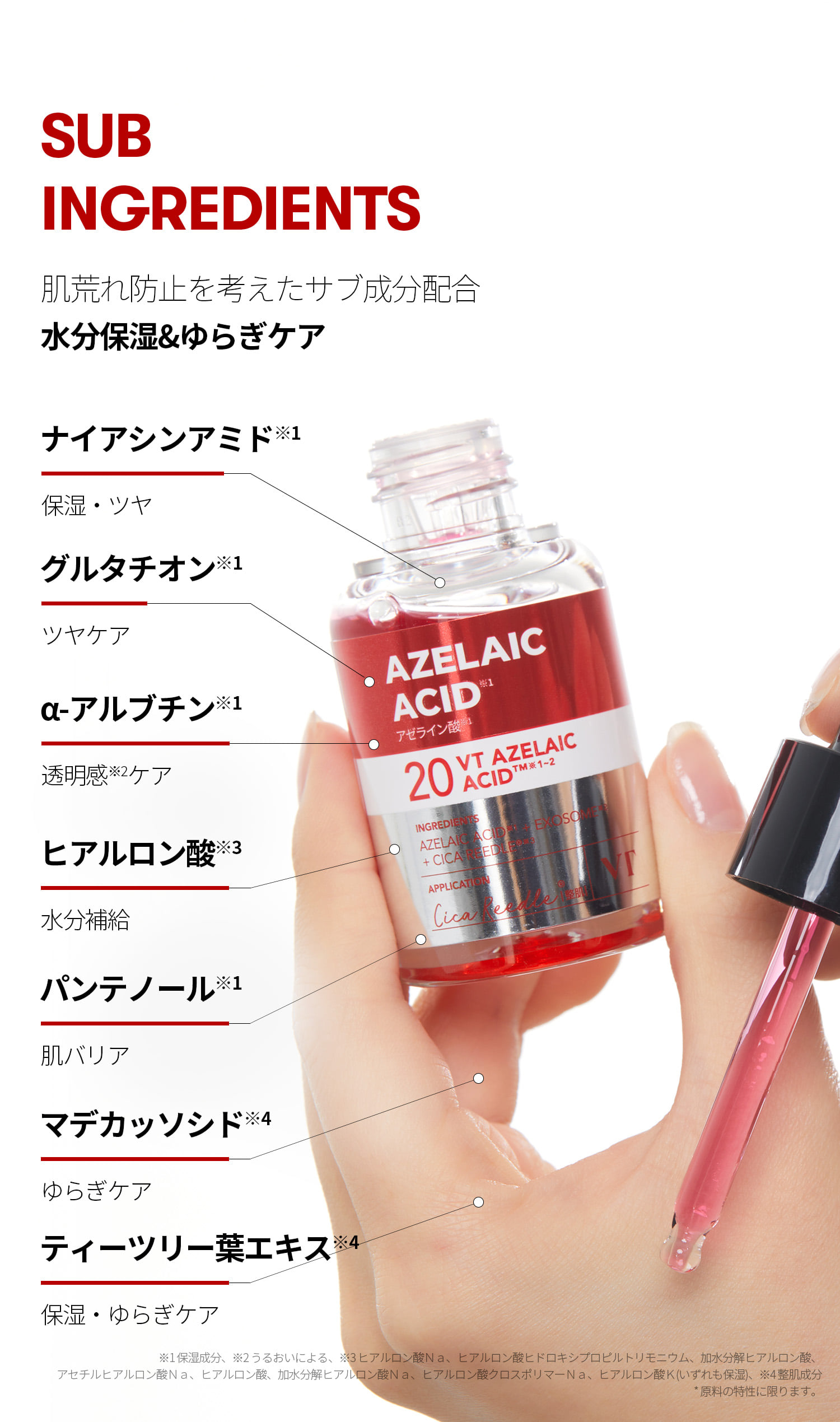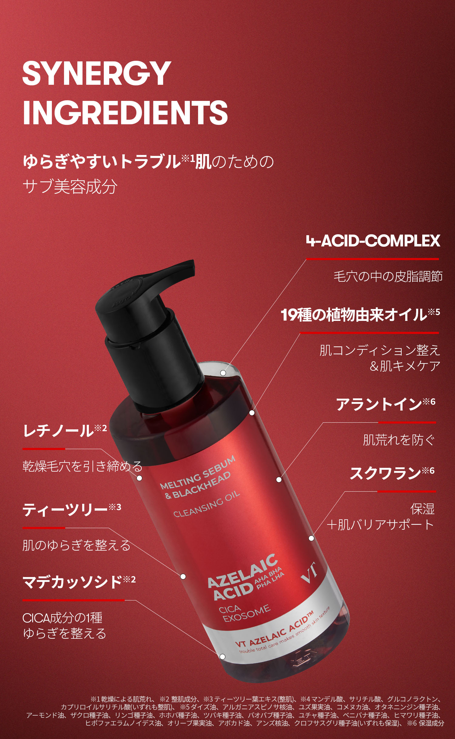 | 成分 | 【VT AZケアクレンジングオイル 300ml】 パルミチン酸エチルヘキシル、テトラオレイン酸ソルベス−30、パルミチン酸イソプロピル、エチルヘキサン酸セチル、トリエチルヘキサノイン、トリ(カプリル酸/カプリン酸)グリセリル、リンゴ酸ジイソステアリル、セスキオレイン酸ソルビタン、ムラサキ根エキス、カプリリルグリコール、エチルヘキシルグリセリン、ダイズ油、水、アルガニアスピノサ核油、ユズ果実油、コメヌカ油、オタネニンジン種子油、プロパンジオール、アーモンド油、ザクロ種子油、リンゴ種子油、ホホバ種子油、ツバキ種子油、アラントイン、アゼライン酸、カプリロイルサリチル酸、グルコノラクトン、マンデル酸、PG、スクワラン、サリチル酸、ペンチレングリコール、バオバブ種子油、BG、ユチャ種子油、ベニバナ種子油、ヒマワリ種子油、ヒポファエラムノイデス油、マデカッソシド、オリーブ果実油、アボカド油、アンズ核油、クロフサスグリ種子油、ヒトサイタイ間葉幹細胞順化培養液、1,2−ヘキサンジオール、デシルグルコシド、ツボクサエキス、ティーツリー葉エキス、リン脂質、レチノール、ヒトサイタイ間葉幹細胞エクソソーム、香料 【VT AZケアマスク(30枚入)】 水、BG、メチルプロパンジオール、グリセリン、1,2−ヘキサンジオール、エリスリトール、ベタイン、ヒドロキシアセトフェノン、(C12−14)パレス−12、エチルヘキシルグリセリン、カプリリルグリコール、アルギニン、(アクリレーツ/アクリル酸アルキル(C10−30))クロスポリマー、カルボマー、キサンタンガム、EDTA−2Na、クエン酸、サリチル酸、グルコノラクトン、カプリロイルサリチル酸、ツボクサエキス、カキ葉エキス、ブドウ果実エキス、PG、イタドリ根エキス、アラビアコーヒーノキ種子エキス、ベニバナ花エキス、クリ殻エキス、チャ葉エキス、サンショウ果実エキス、アゼライン酸、ヒトサイタイ間葉幹細胞順化培養液、ヒトサイタイ間葉幹細胞エクソソーム 【VT リードルS AZケアセラム 30ml】 水、PG、アゼライン酸、1,2−ヘキサンジオール、ヒドロキシプロピルシクロデキストリン、リン酸2Na、マルトデキストリン、パンテノール、ラウリン酸ポリグリセリル−10、エチルヘキシルグリセリン、シアノコバラミン、グリチルリチン酸2K、ナイアシンアミド、乳酸桿菌/豆乳発酵液、BG、ヒアルロン酸Na、キシリチルグルコシド、無水キシリトール、ヒトサイタイ間葉幹細胞順化培養液、ペンチレングリコール、サリチル酸、アルブチン、クエン酸、グルコノラクトン、グルタチオン、カプリロイルサリチル酸、キシリトール、ティーツリー葉エキス、ヒアルロン酸ヒドロキシプロピルトリモニウム、ドクダミエキス、ツボクサエキス、トコフェロール、シリカ、マデカッソシド、加水分解ヒアルロン酸、アセチルヒアルロン酸Na、ヒトサイタイ間葉幹細胞エクソソーム、デキストリン、ヒアルロン酸、アシアチコシド、加水分解ヒアルロン酸Na、ヒアルロン酸クロスポリマーNa、ヒアルロン酸K、プロポリスエキス、マデカシン酸、アシアチン酸 |