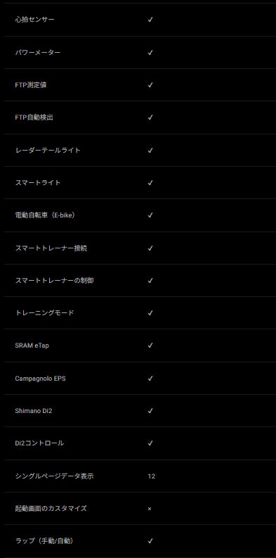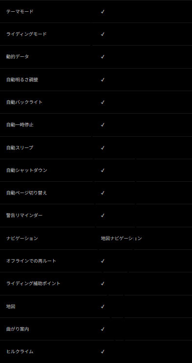 - ナビ機能:ターンバイターンナビ、オフコース・リルート2.0、iClimb 3.0 など