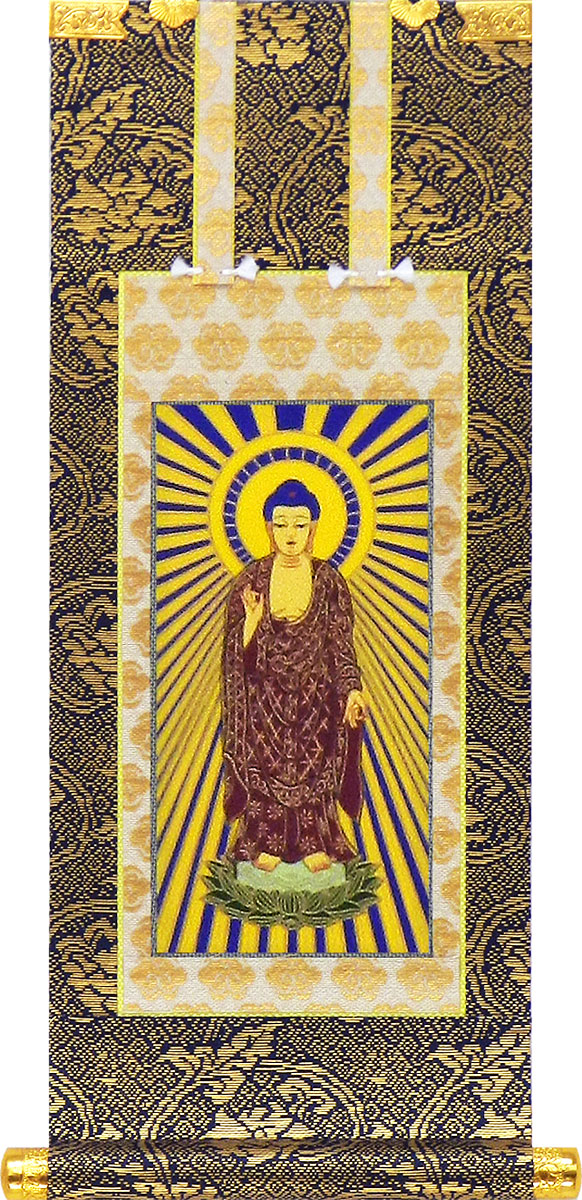 | 仕様 | | サイズ | 掛け軸寸法: 豆代 約横8.5×縦19.4cm 20代 約横9.4×縦22cm 30代 約横10.6×縦26cm 50代 約横12×縦32.5cm ※4通りのサイズからお選びいただけます。 | | 説明 | 浄土真宗本願寺派の仏壇用掛軸です。 本尊は阿弥陀如来、脇侍(脇掛)は左が「蓮如上人」、右が「親鸞聖人」となります。本紙は仏画家による手彩色。国内表装・肉筆画。 ※自立式ではなく仏壇にピンで留めるタイプになります。 | | 仕様 | 表装 : 本佛仕立(真の草) 裂地 : 牡丹柄(中金)